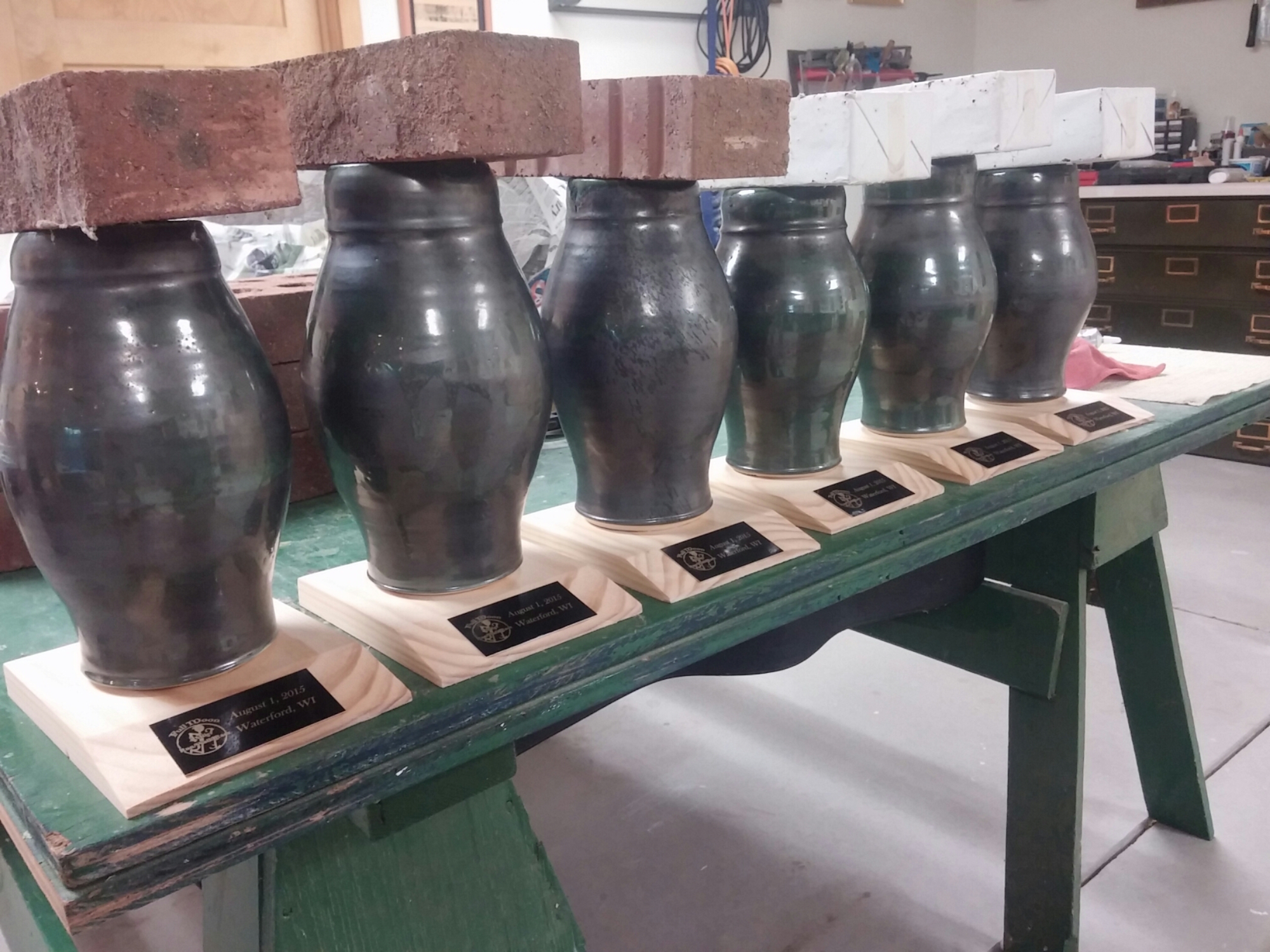 Full Moon 4 Miler TOMORROW in Waterford. Thanks to Brett Roberts for the awesome vases for trophies. Will you win one of the 6? I’d like to try! Here they are drying, ready for tomorrow nights race. Good running you all.