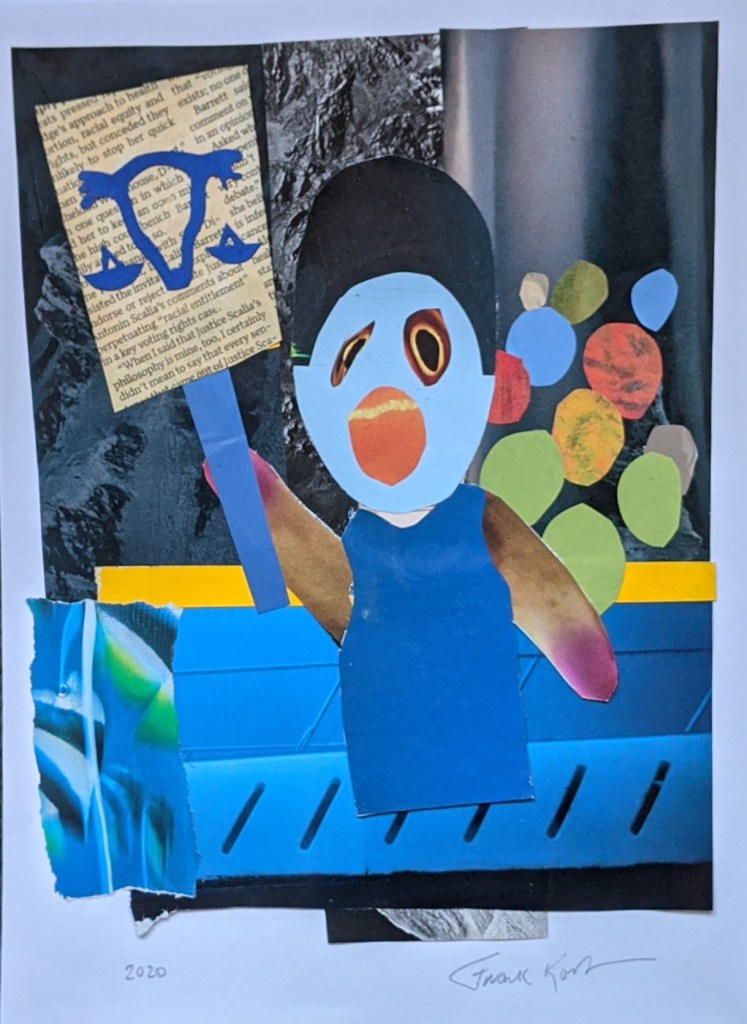 “Protest!” Frank Korb, Collage on Paper, 10″ x 8″, 2020, NFS.