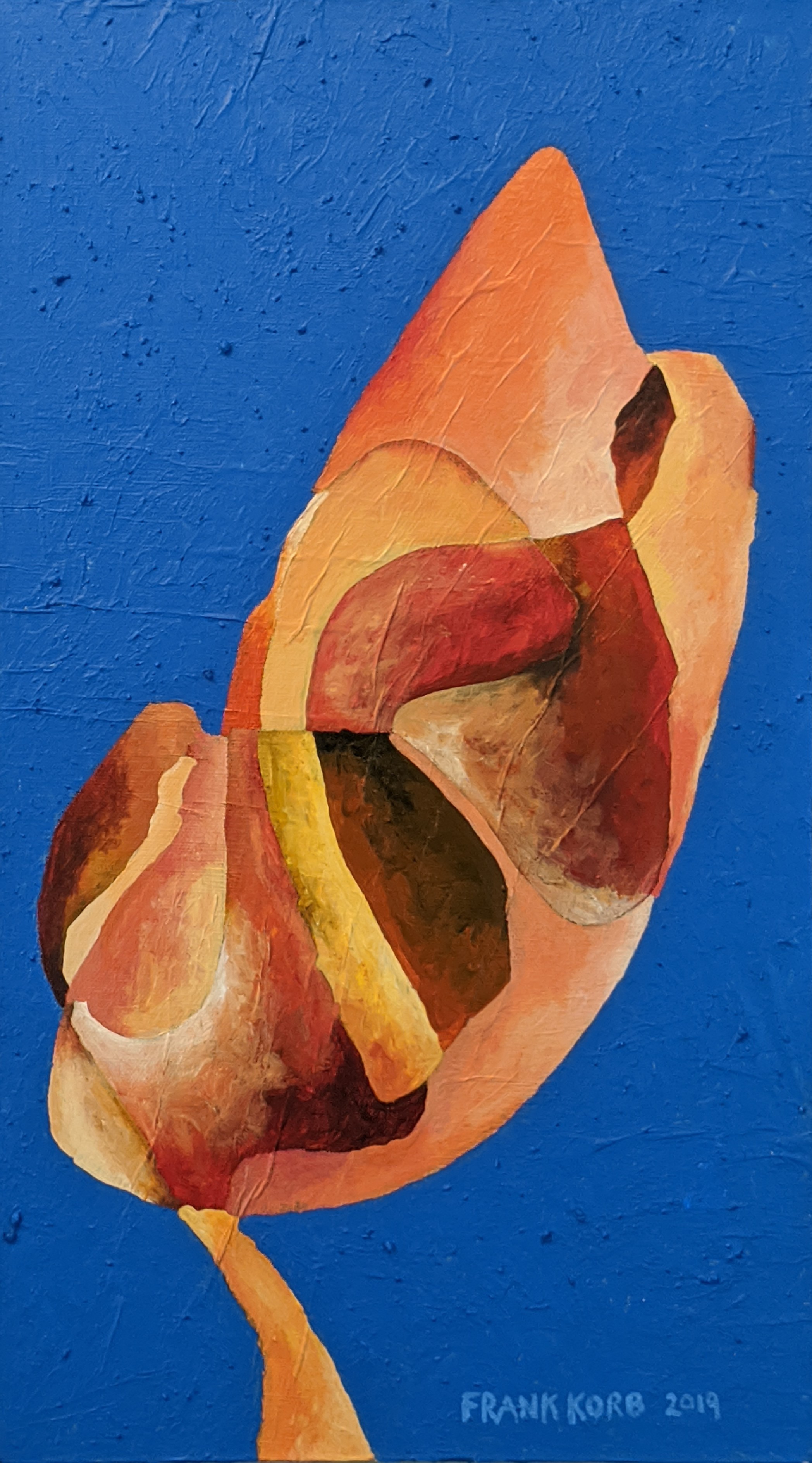 “The Two Fit Together as Part of a Seamless Whole,” Frank Korb, Acrylic and Collage on Canvas, 39″ x 24.25″, 2019. $1,135.
