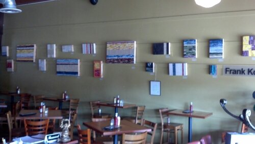 Thanks to Cam Roberts at the Bay Milwaukee staple for a good meal, great times, and awesome art (mine notwithstanding, I hope) CAFE LuLu. The show went up in record time: 3 hours SOLO. I lost one work to a 12 foot drop but… I hope to have it up and in place on Wednesday afternoon. I am really pleased with the showing – perhaps you can see the groups that were made as you look things over. This exhibition of works will be on display through October so… while it is there, get in and check it out. I hope to get a lot of comments, feedback, and followers. Milwaukee Gallery Night is this Friday, but Bay View’s Gallery night is in September – enjoy the show.
