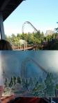 - Two coasters from decades apart. Wooden, noisy, and rockin’ versus the steel, smooth and silent!
